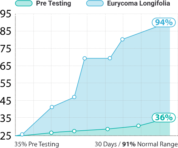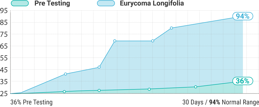 Eurycoma Longifolia Root Extract It has a few different nicknames, but they all come to the same result: A big boost in T-levels! Clinical studies show that only 36% of test subjects were in the ânormalâ range of T-levels. After only 1 month, eurycoma longifolia helped 94% of test subjects reach the normal range. |